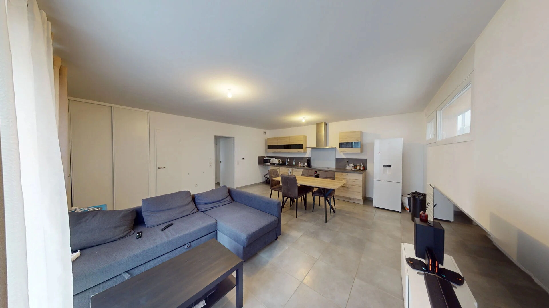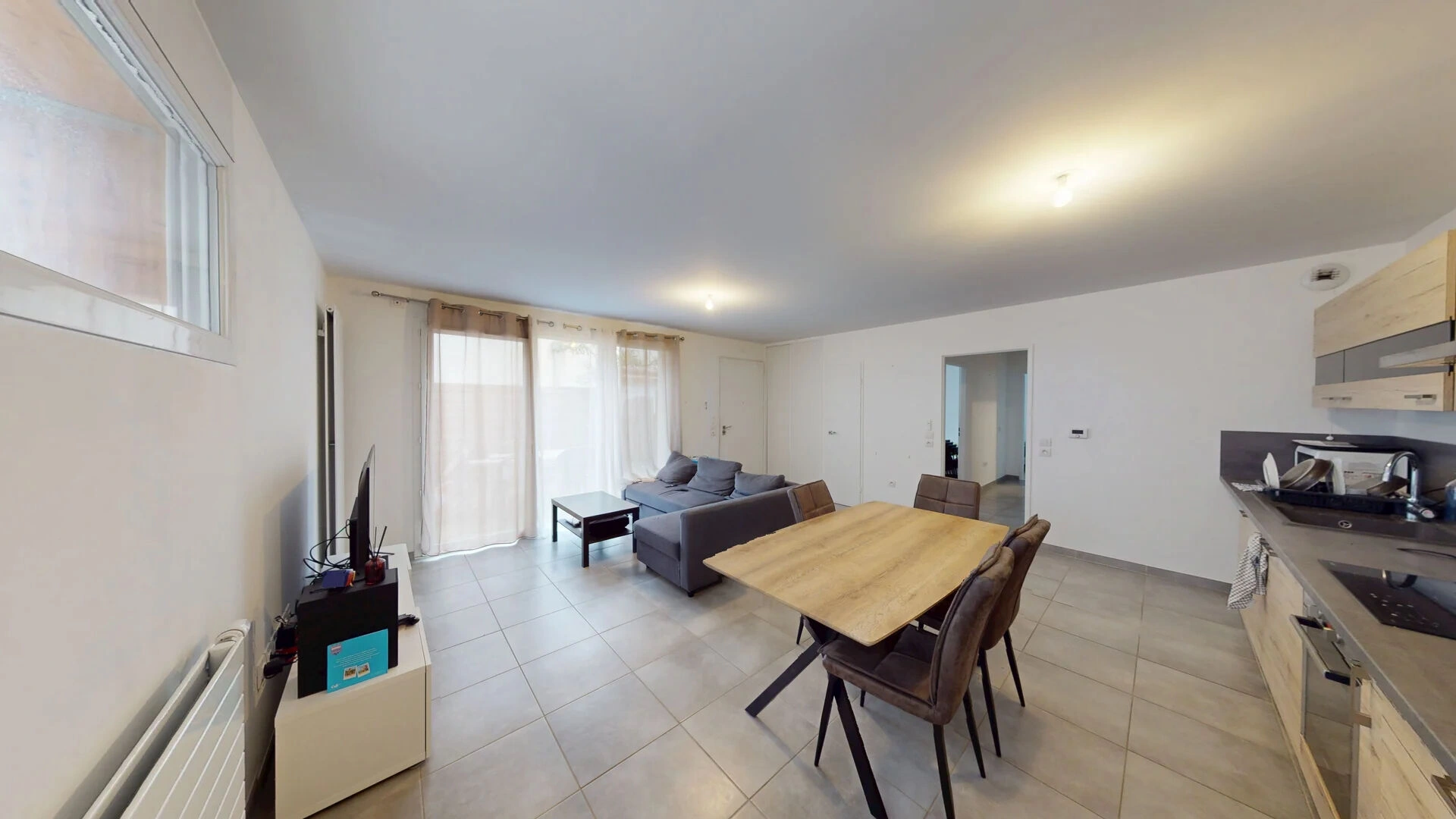 Pièce de vie lumineuse donnant sur l'extérieur