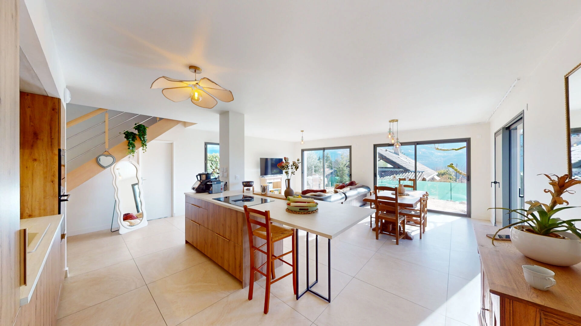 Développant une surface habitable de 125 m², elle est implantée sur un terrain de 341 m², au calme, dans un environnement verdoyant offrant une vue dégagée sur les massifs.